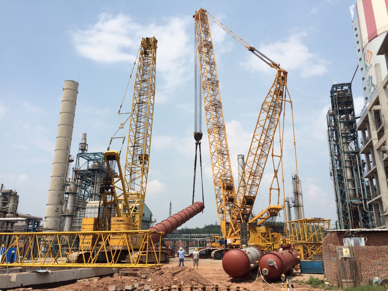 多晶硅 大型蒸發(fā)器吊裝(500T汽車吊和260T汽車吊) 多晶硅650T履帶吊 綿陽(yáng)京東方 硝酸吸收塔 脫硫設(shè)備吊裝 650T和260T雙…【了解詳情】